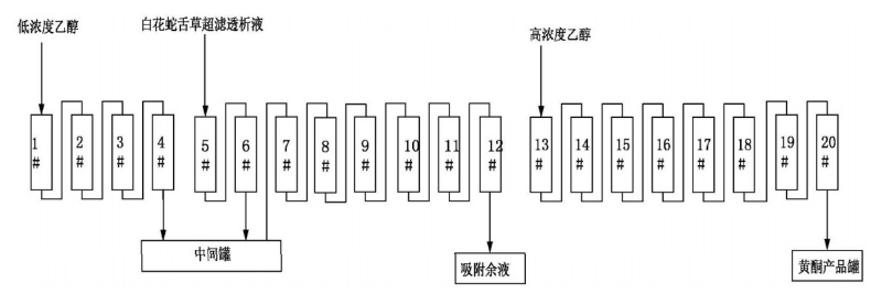 白花蛇舌草連續(xù)離子交換及色譜分離裝置示意圖