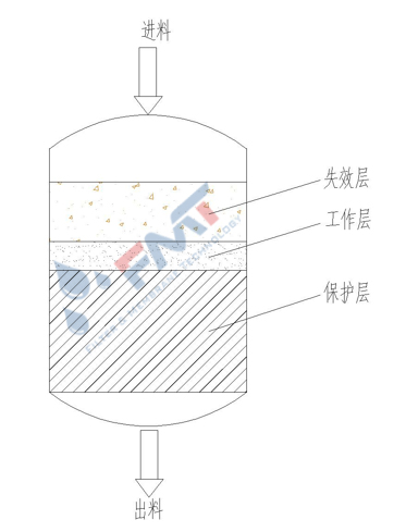 為了提高樹(shù)脂利用率,我們把傳質(zhì)區(qū)進(jìn)行抽象分割成幾個(gè)小單元,一旦上面的小單元飽和后就移出來(lái)進(jìn)行洗水及再生操作,處理用的新鮮樹(shù)脂單元又回到傳質(zhì)區(qū)底部循環(huán)使用,這樣大大提高樹(shù)脂的利用率。