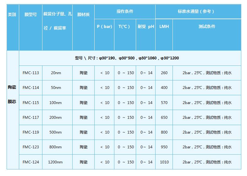 無機陶瓷膜是以氧化鋁、氧化鈦、氧化鋯等經(jīng)高溫燒結而成的具有多孔結構的精密陶瓷過濾材料,多孔支撐層、過渡層及微孔膜層呈非對稱分布,過濾精度涵蓋微濾、超濾、納濾。陶瓷膜過濾是一種“錯流過濾”形式的流體分離過程:原料液在膜管內(nèi)高速流動,在壓力驅(qū)動下含小分子組分的澄清滲透液沿與之垂直方向向外透過膜,含大分子組分的混濁濃縮液被膜截留,從而使流體達到分離、濃縮、純化的目的。廈門福美科技有限公司提供的陶瓷膜過濾精度覆蓋微濾和超濾級別,微濾過濾孔徑0.05μm-0.14μm,超濾過濾精度10KD-50KD.